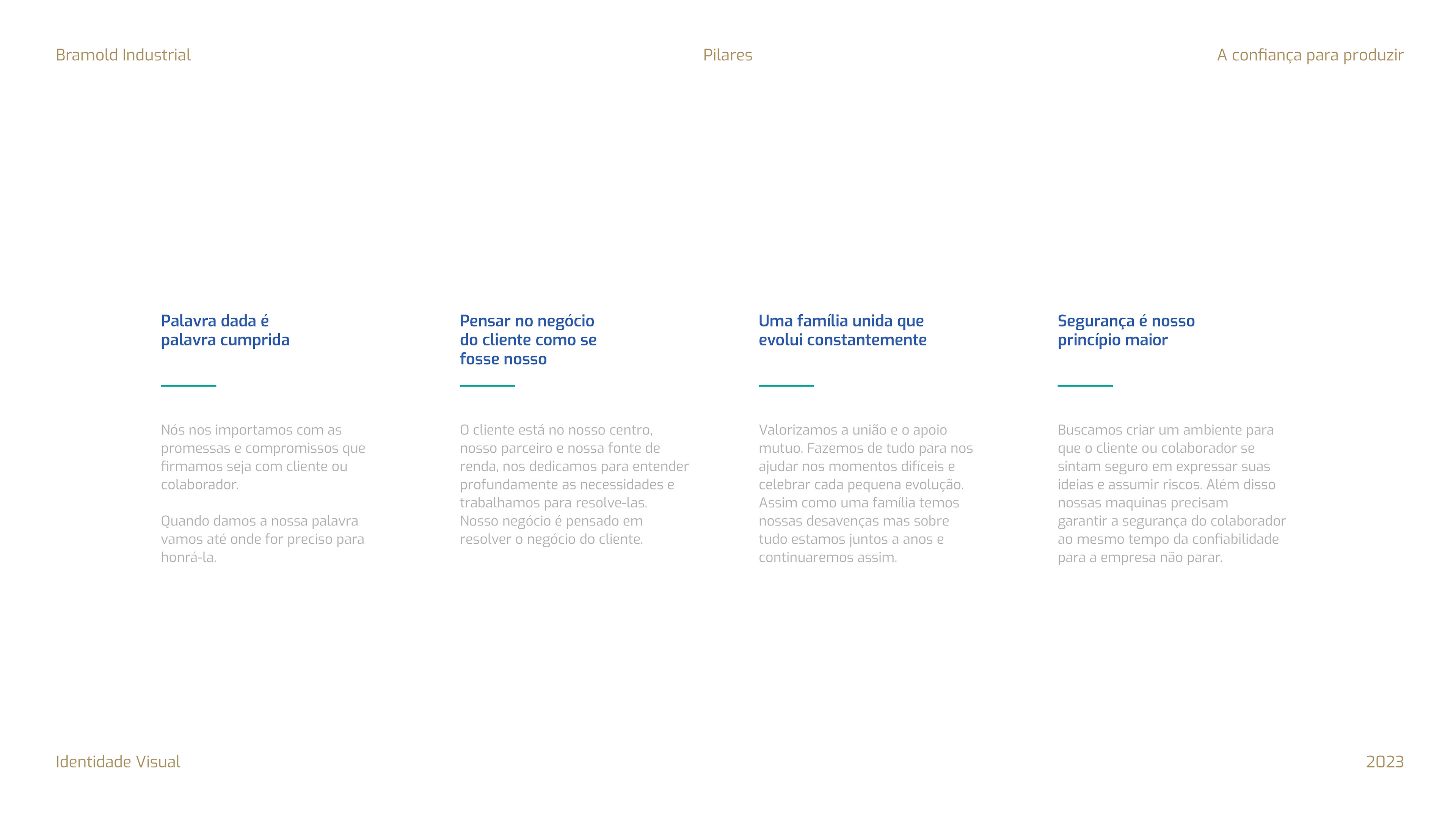 A Bramold abraçou uma nova postura no mercado, prometendo ser mais do que uma simples fabricante de máquinas. Agora, ela se apresenta como um fiel companheiro, um aliado na concretização das ideias. A personalidade da Bramold como Ajudante do Mestre transparece em seu tom de voz humano e acessível. Em um mundo muitas vezes dominado por jargões técnicos, a Bramold escolheu a linguagem da simplicidade e da compreensão, reafirmando seu compromisso em ser mais do que uma empresa de máquinas; ela é um parceiro confiável, sempre pronto para ajudar os mestres das realizações a moldar um futuro cheio de beleza e qualidade. Atualmente a empresa tem seu campo de atuação voltado para o mercado nacional e internacional, nos seguimentos de molduraria, movelaria e esquadria, servindo como referência no que diz respeito a qualidade de seus produtos, bem como pela seriedade no atendimento aos clientes.
